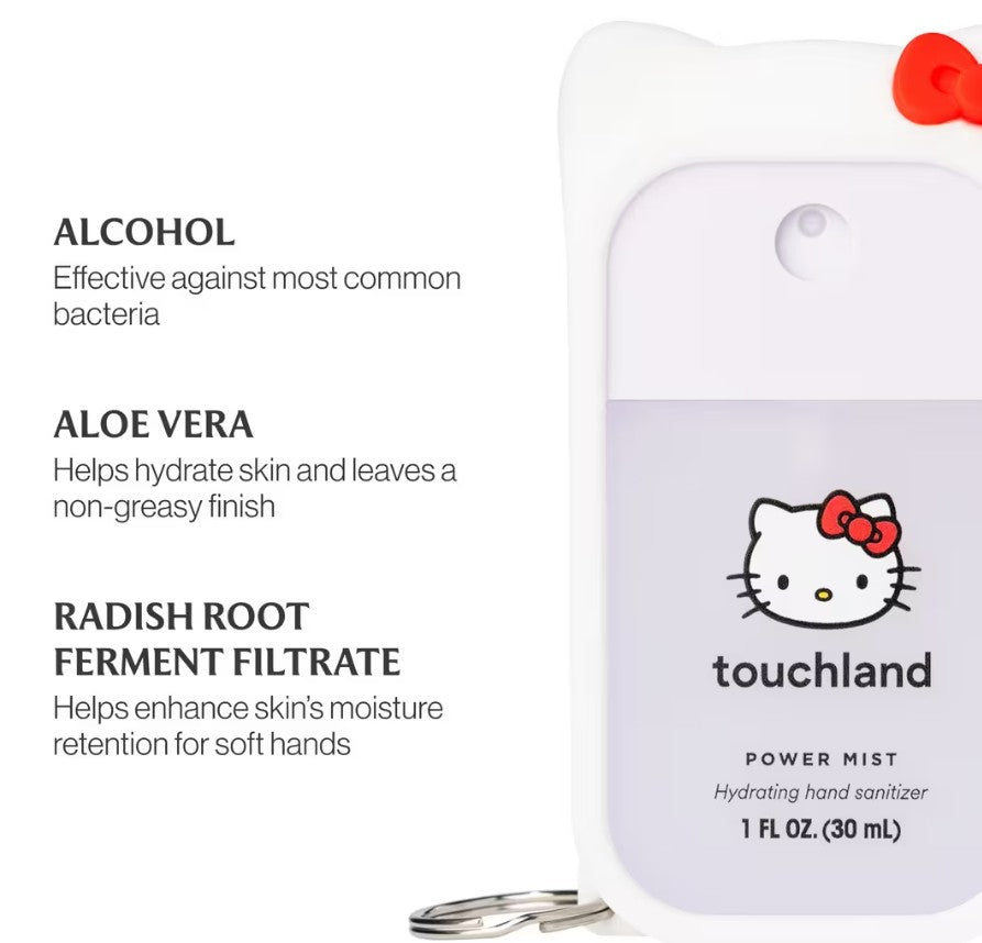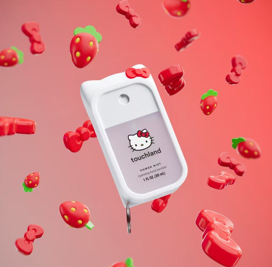Introducing the Touchland x Hello Kitty® Power Mist & Mist Case! Spread kindness with this Limited Edition Collaboration featuring our award-winning Berry Bliss hand sanitizer & supercute Hello Kitty® case. Enjoy a fragrance blend of strawberries, black raspberries, violets, and vanilla bean.