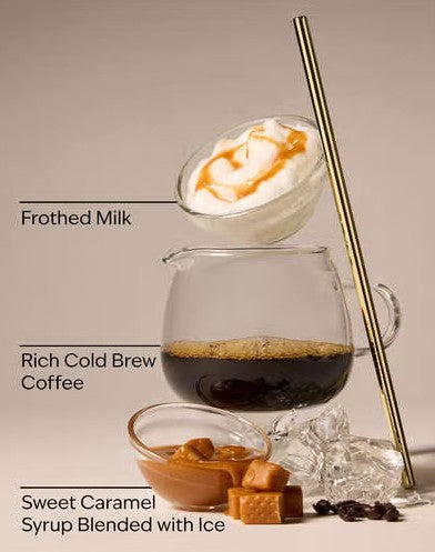 Fragrance notes: rich cold brew coffee, frothed milk and sweet caramel syrup blended with ice.