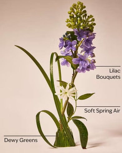 Fragrance notes: lilac bouquets, dewy greens and soft spring air.