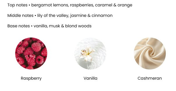 Top notes • bergamot lemons, raspberries, caramel & orange