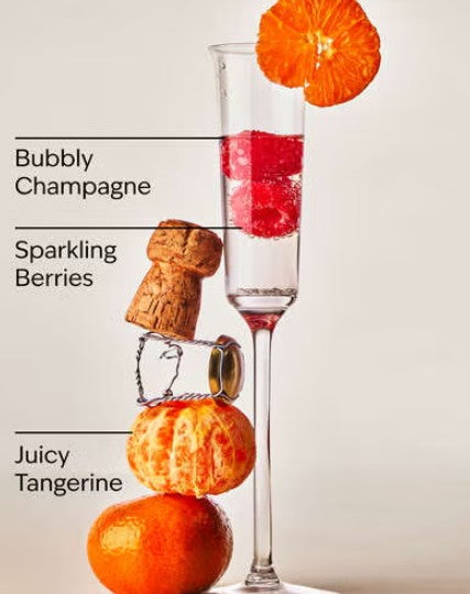 Fragrance notes: bubbly champagne, sparkling berries and juicy tangerine.