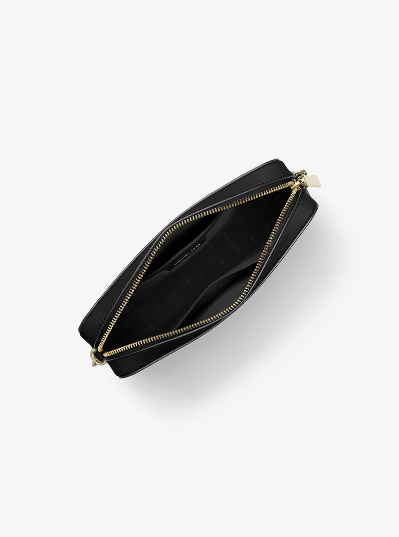 Structured in a clean-lined silhouette crafted from Saffiano leather, our Jet Set crossbody bag is an instant classic. Gold-tone hardware speaks to a luxe sensibility, while a spacious interior offers easy organization for your essentials. | • Crossbody bag