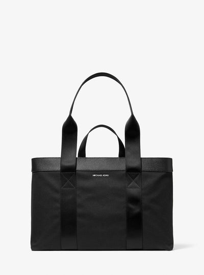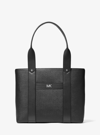 Cooper Logo Embossed Pebbled Leather Tote Bag (BLACK)