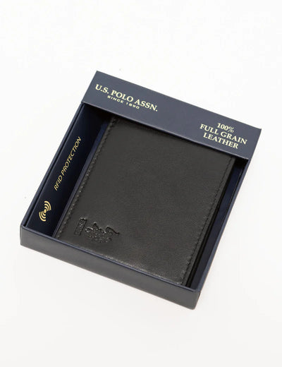 MENS LEATHER BIFOLD WALLET (PRETO) - Disponivel