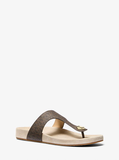 Hannah Signature Logo T-Strap Sandal (BROWN)
