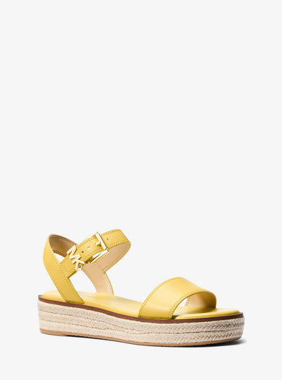 Emmy Leather and Leopard Print Calf Hair Wedge Trainer (MARIGOLD)