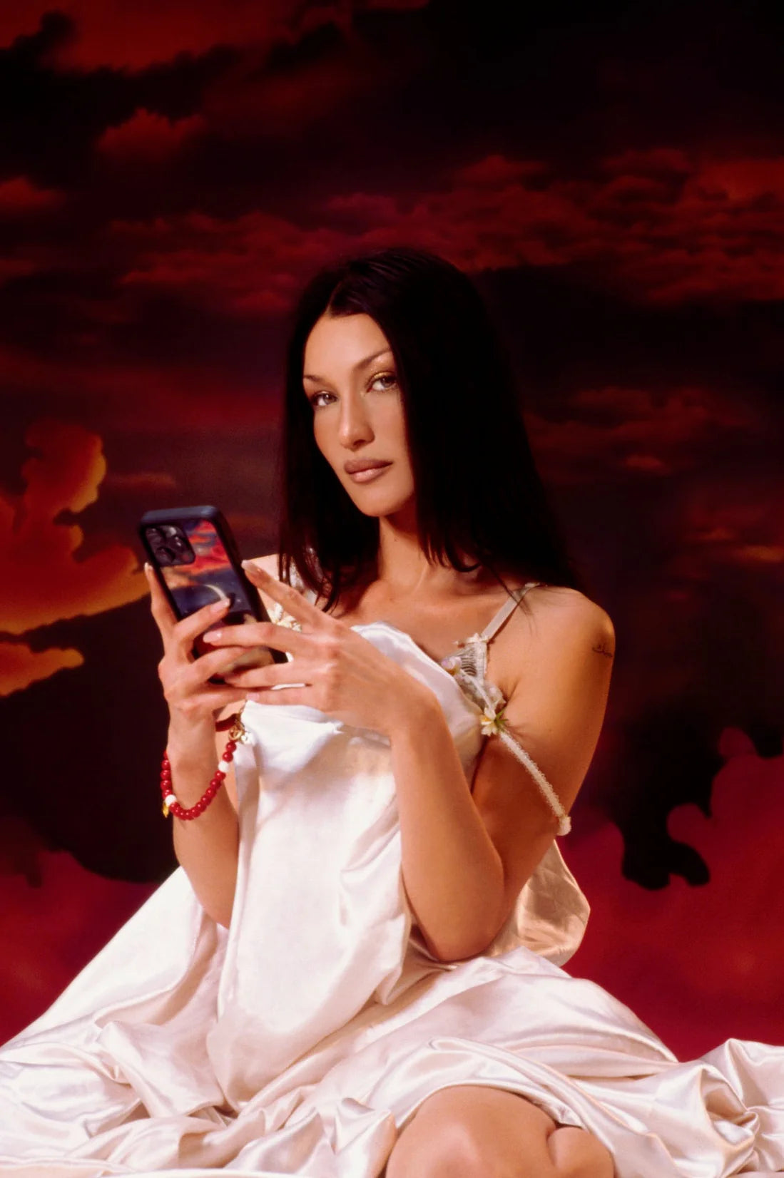 An ethereal iPhone Case designed by Bella Hadid and her besties Devon and Sydney Carlson. Available in multiple sizes, this limited edition beauty features a celestial sky, crescent moon, and softly glowing clouds. All-around protection with raised bumper in front of phone adds layer of screen protection. The perfect accessory for dreamers, lovers, and late night texters.